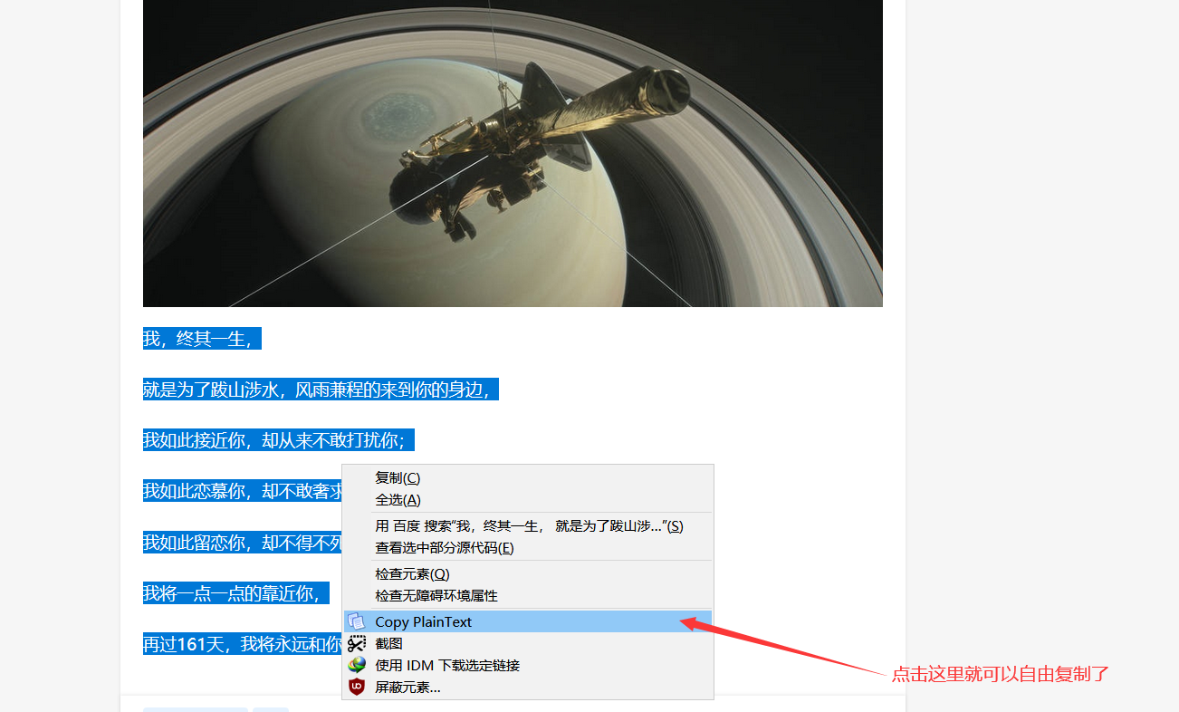 第二、就是用脚本,脚本十分的方便,可以整篇整篇的复制,例如,火狐的Copy PlainText浏览器插件,大家可以安装一下。Chrome也有这个插件,但是需要费点事,名字也为Copy PlainText,这个插件几乎可以复制所有被锁定的文本,对于文章的复制搬运是不是更方便呢!