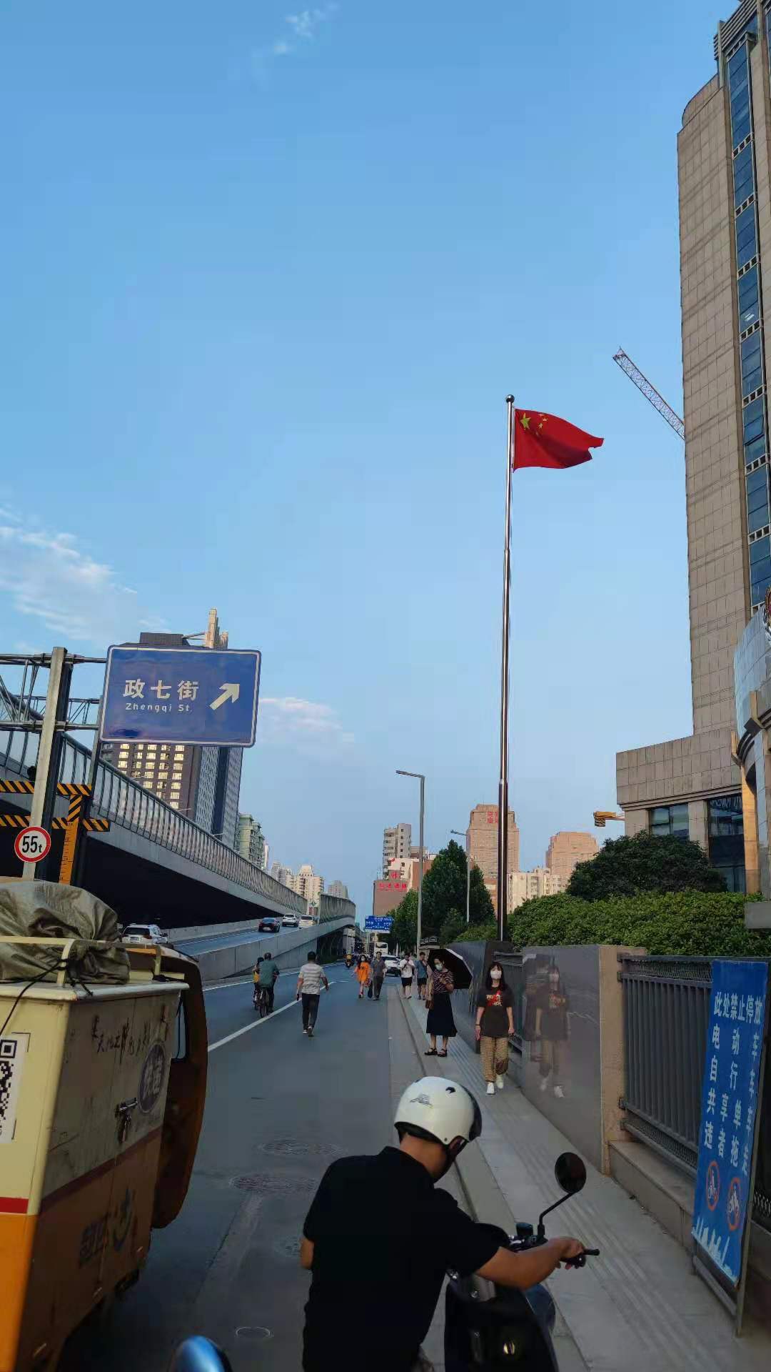 回郑州,夏天的天整好,五星红旗迎风飘扬,很有感觉,于是就有了这样图片!