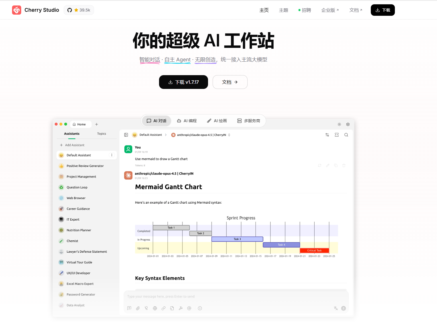 Cherry Studio 是一个支持多平台的 AI 客户端,我们致力于让更多人能够享受到 AI 带来的便利。